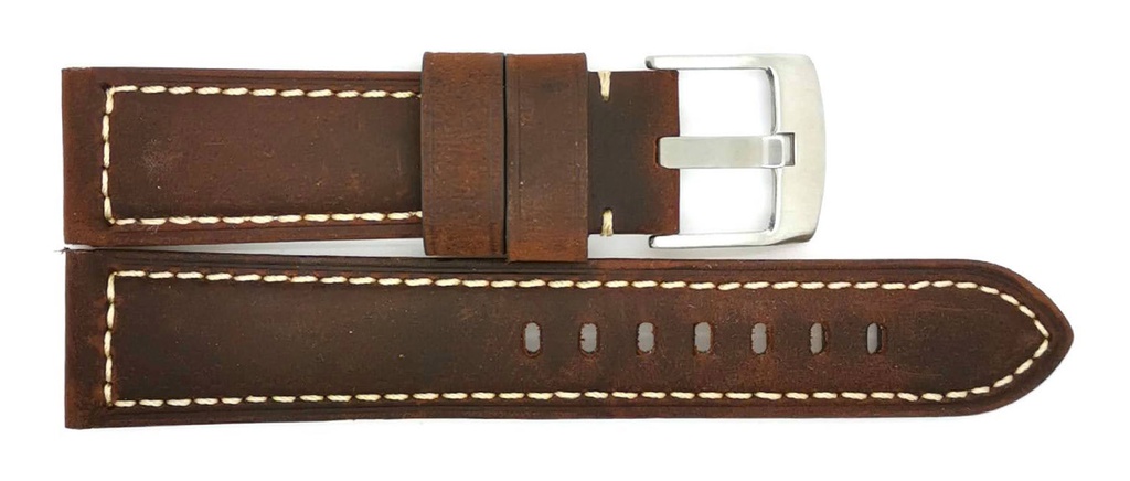 Genuine leather watch strap with same color stitching and heavy padding. With stainless steel buckle