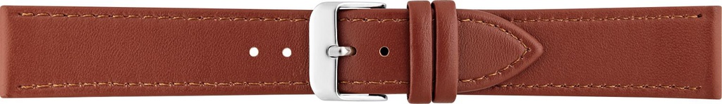 Lederen platte horlogeband met stiksels om duurzaamheid te garanderen. De roestvrijstalen gesp is sterk en duurzaam. Deze horlogeband past op traditionele, geklede horloges en is verkrijgbaar in vele maten